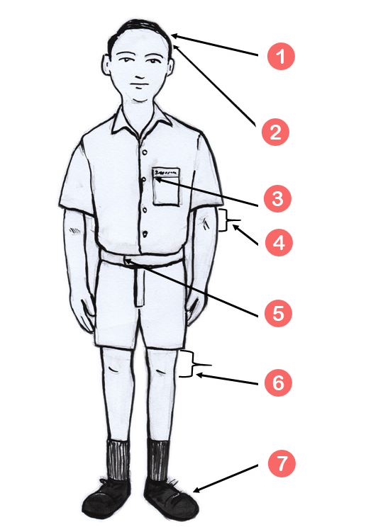 - The hair should be cut short and neatly combed to the side. (Side hair length should be 1/2 inch)